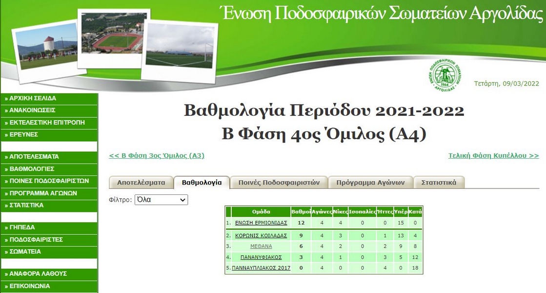 του θεσμού, μετά και το 5-0 απέναντι στον ΑΕΣ Μεθάνων, σε εξ’ αναβολής παιχνίδι, για την 1η αγωνιστική του γκρουπ, που έγινε την Τετάρτη (09/03) στο γήπεδο των Διδύμων. Τρία γκολ σημείωσε ο Χαλούβας. Η ομάδα μας στους τέσσερις αγώνες του ομίλου δε δέχτηκε γκολ (τέρματα 15-0) και στους «4» θα παίξει κόντρα στον Φοίνικα Νέας Επιδαύρου.